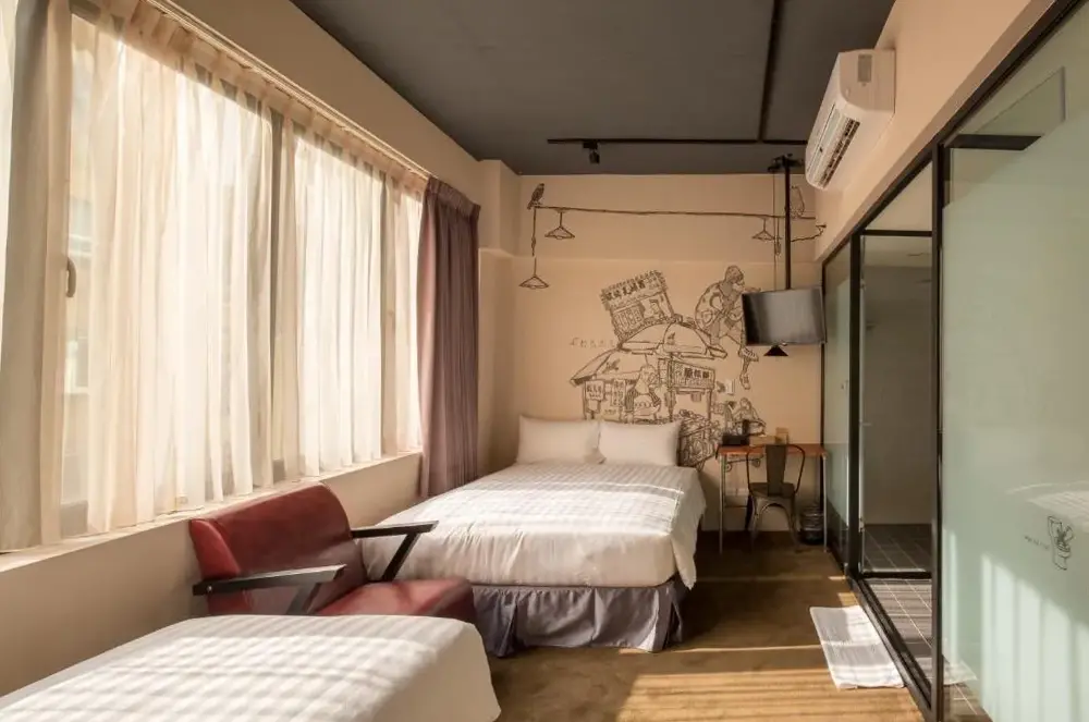町記憶旅店位在台北市萬華區昆明街119號,鄰近西門站與繁榮商圈。飯店提供多種客房選項,包含家庭房及24小時前台服務。旅客可輕鬆抵達知名景點如台北植物園(1.2公里)、台灣國家博物館(1.1公里)與台北101(6公里)。旅店設有免費Wi-Fi、洗衣店與電梯等設施,並提供機場接駁服務至台灣陶揚國際機場(25公里)。附近擁有萊威(100公尺)、Inaka Handmade Udon(田舍手打麵)(50公尺)等特色商店與餐廳,方便旅客享受當地風味料理。此外,飯店內附設迷你吧供住客使用,並配有行李寄存處與加熱設備。其地理位置優越,步行即可到達紅房子、酒吧與美食聚集地,適合喜愛夜生活或探索城市文化的遊客。